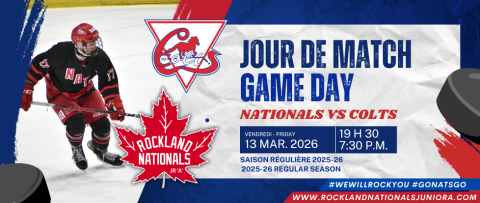 The Rockland Nationals are hosting the Cornwall Colts at Clarence-Rockland Arena. Come join us as the Nationals will try to capture another win!