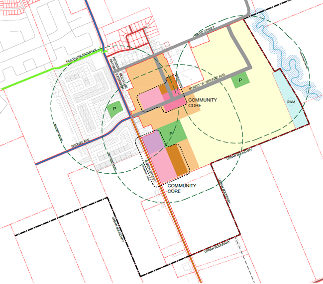 LA PROPOSITION DE MODIFICATION AU PLAN OFFICIEL réviserait le Plan secondaire des terres d'expansion par le biais d'une modification du Plan officiel soumise par l'un des détenteurs majoritaires dans la zone du Plan secondaire.